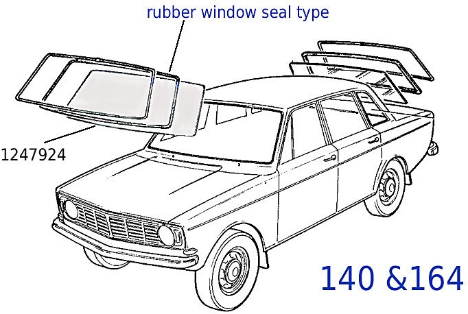 Voorruit Helder Volvo 140 164 rubberruit 1247924